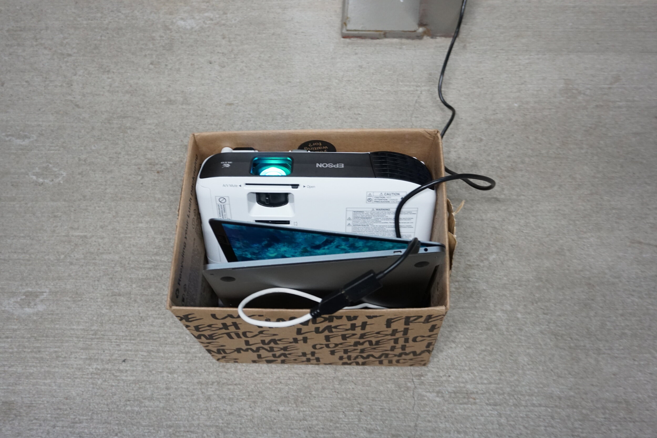 This video was projected & installed on the third floor landing of an interior stairwell. This way no outside light interrupted the viewing experience and viewers had to hike up to even see it. The goal of the experimental installation was for viewers to, at the very least, consider their relationships with their spaces and environments. Another goal of this exhibition was for viewers to change their behavior. Because of the way it’s projected onto the ceiling, anyone viewing it, had to stop and crane their neck up, sit down in the stairwell, or even lay in the stairway to view it properly.